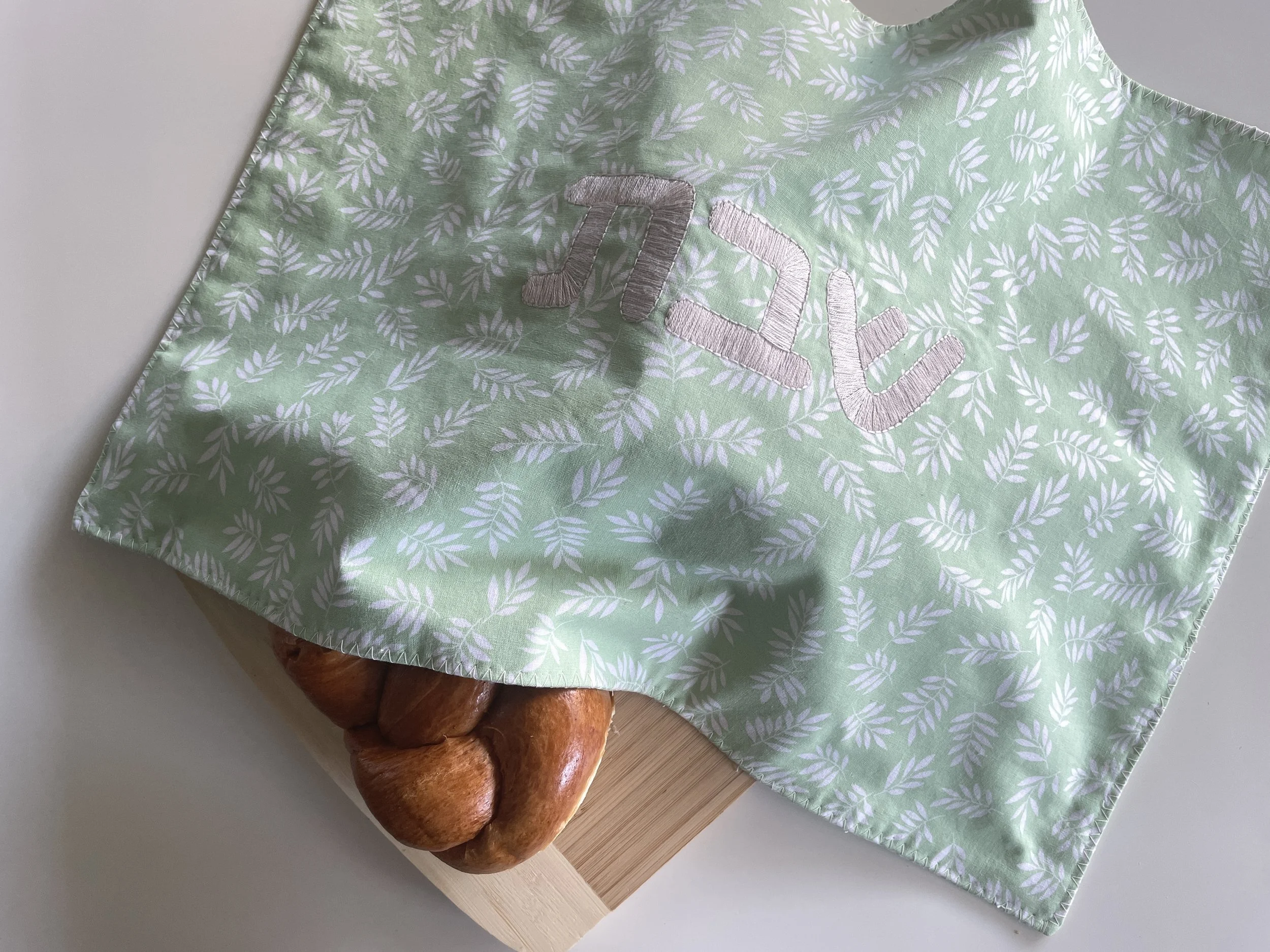 How it’s made: hand-embroidered text on patterned fabric, machine-sewn backing on in identical fabric